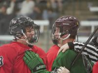 The Wisconsin Seniors took charge by scoring first, but North Dakota stormed back scoring two in the first and eventually adding another in the third. The two teams battled hard and tensions flared leading to hard, physical play and a close final score, 3-1 North Dakota.