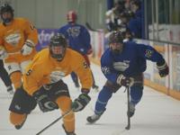 In a heavyweight battle of the unbeaten, the Minnesota Seniors took the lead only to have the game tied by the Michigan Seniors with less than two minutes remaining in the game. The third period buzzer stopped the game at 3-3 and only one goal was scored in the decisive shootout - 4-3 Minnesota victory.
