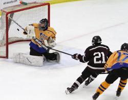 Christian Manz (Blaine) continued to be strong between the pipes to earn the victory after stopping 14 of the 15 shots he faced.